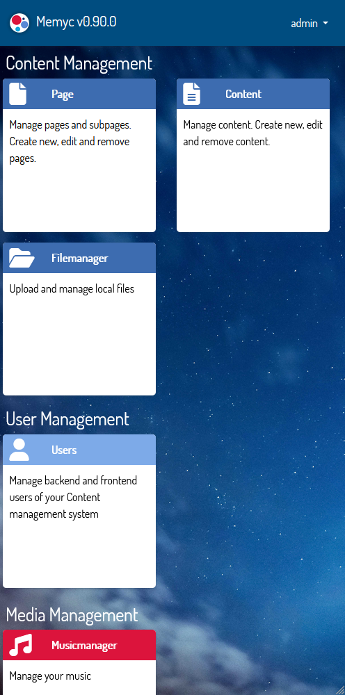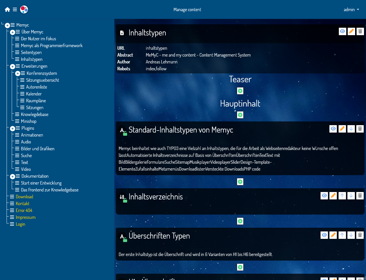 Memyc beinhaltet wie auch TYPO3 eine Vielzahl an Inhaltstypen, die für die Arbeit als Webseitenredakteur keine Wünsche offen lässt